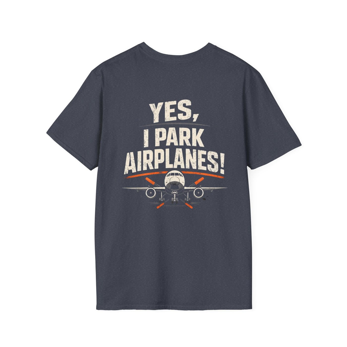 A lightweight, crew-neck tee designed for people who live and breathe aviation. The front carries a small, vintage-style hangar logo while the back makes a bold, playful statement with a distressed airplane graphic and the line “Yes, I park airplanes!” Soft ring-spun cotton and a classic fit keep the shirt comfortable through long hangar days, weekend fly-ins, or casual meetups. It wears like a favorite from the first wash — breathable, slightly broken-in, and easy to layer under a jacket or overalls. The subtle natural fleck options and durable print methods mean this shirt stands up to regular use while keeping a relaxed, authentic pilot-and-crew vibe.